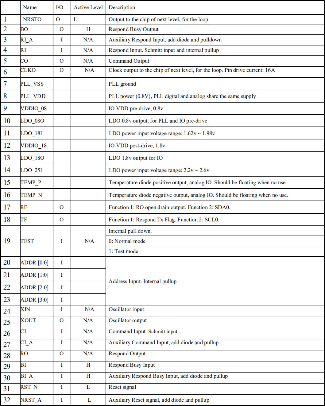 RST signal: 1.8V; when the board is powered on and plunged in IO signal, this signal will transmit from 00, 01…17 and till the last chip.
