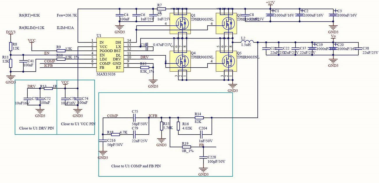 6. DC-DC Circuit: Parallel clamping circuit composed of MAX15026 and CMOS tube TPHR9003NL as well as MBR0540 and NCP3420D. See Fig 18 and Fig 19