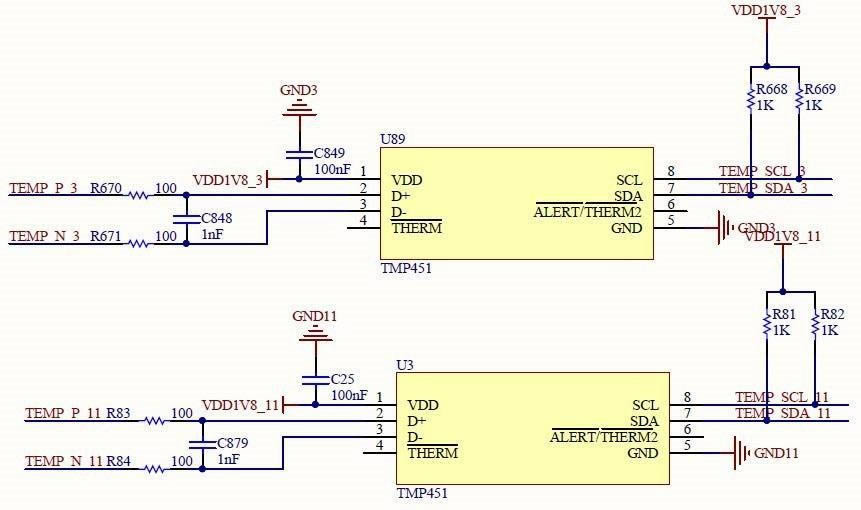 T9+ Temperature Sensor IC connects the first chip (U6) of No. 2 signal chain