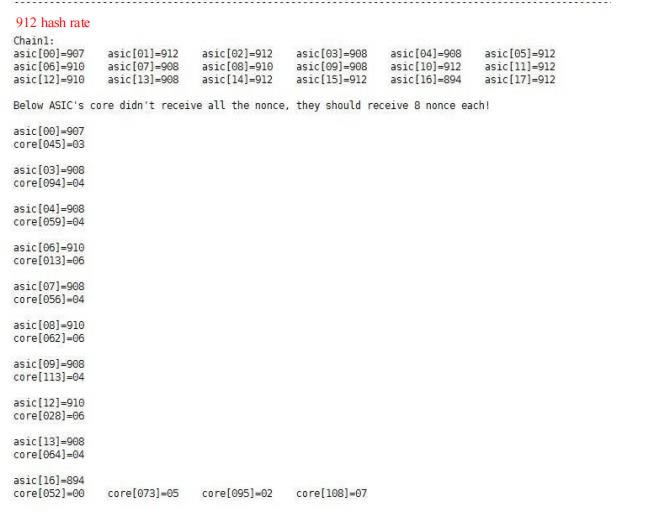 1) Hash board tester shows NG due to insufficient Nonce and low hashing. The serial port shows information on the number of Nence each chip returns. Generally, if the Nence number is lower than the pre-set value, you should look for chip malfunction. If it is not due to poor soldering or peripheral reasons, you should just replace the chip.