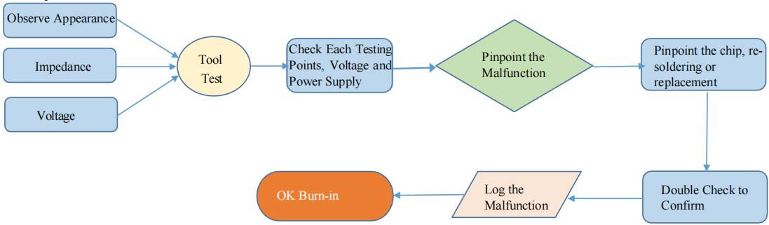 3. Watch out for the techniques used, make sure of no obvious PCB deformation after changing any fittings, check for missing/open circuit/short circuit on parts.