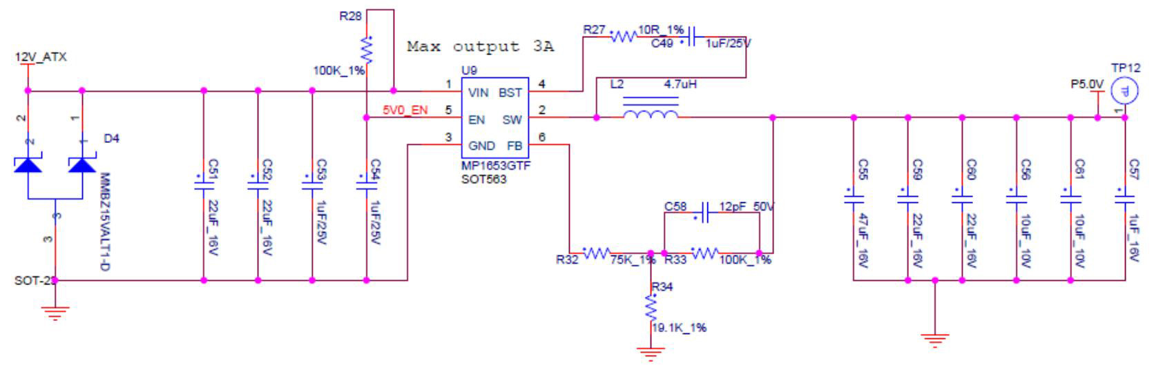4. 5V is abnormal, refer to the above "1" point, 12V output is normal, such as 5V has no short circuit to ground (no short circuit corresponding to MOS tube), correspondingly check U6 welding, If there is no abnormality in welding, the material can be replaced; if there is a short circuit, some circuits and parts of the parallel MOS need to be checked.