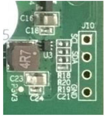The cable of download cable is connected to J10 of the PCB (position 2 in the figure below), and it needs to be connected to GND, SDA, and SCL.