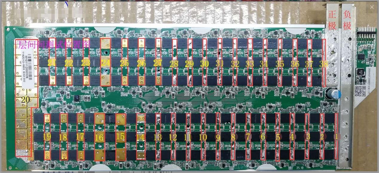 ②Interlayer voltage test position: layer 1 is the voltage value between 1 and 2, position 1 is the negative electrode of layer 1, and position 2 is the positive electrode of layer 1; layer 2 is the voltage value between layer 2 and 3, and position 2 is the negative electrode of layer 2. Position 3 is the positive electrode of layer 2; layer 3 is the voltage value between 3 and 4, position 3 is the negative electrode of layer 3, position 4 is the positive electrode of layer 3, and so on for each layer.