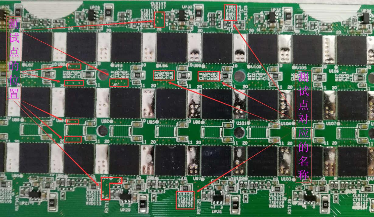 The fourth step: reset is normal, test whether chipid is PASSED If failed, check the CLK, TXD, RXD signals. Step 5: chipid test PASSED , Check the effective value of the chip when the hash rate is low.