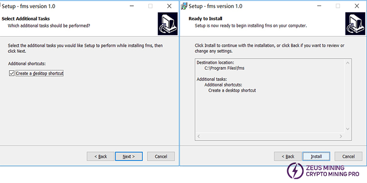 3. Continue to click "Next", check "Create desktop shortcut". Then click the "Install" button to start the installation.