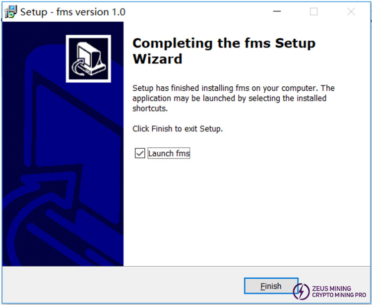 4. After the progress is completed, click "Finish", close the page, and complete the installation of the FMS program. By default, "Automatically open FMS after closing" is checked, and the FMS program will be automatically opened when the page is closed.