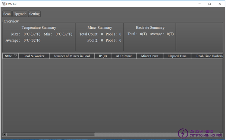 FMS is a batch management tool for Avalon miners, a convenient program for miner IP scanning, changing mining pool information, monitoring hash rate and temperature, etc.