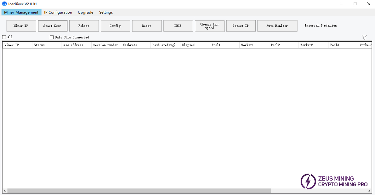 Please contact Jay, a senior technical engineer at ZEUS MINING, via WhatsApp to obtain and download IceRiver_MinerTool (IP scanning tool).
