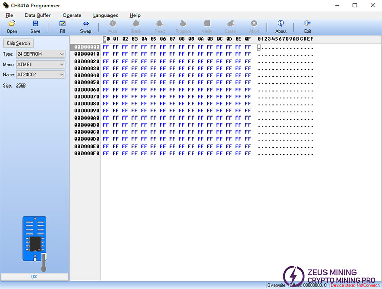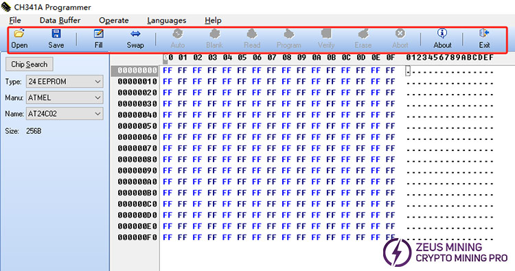 Please contact Jay WhatsApp, senior technical engineer of ZEUS MINING, to get CH341A EEPROM programming software.