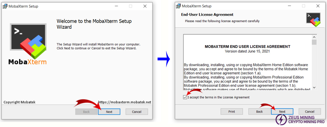 2. Follow the installation wizard and proceed with the steps below: click "Next", read and accept the terms of the license agreement.