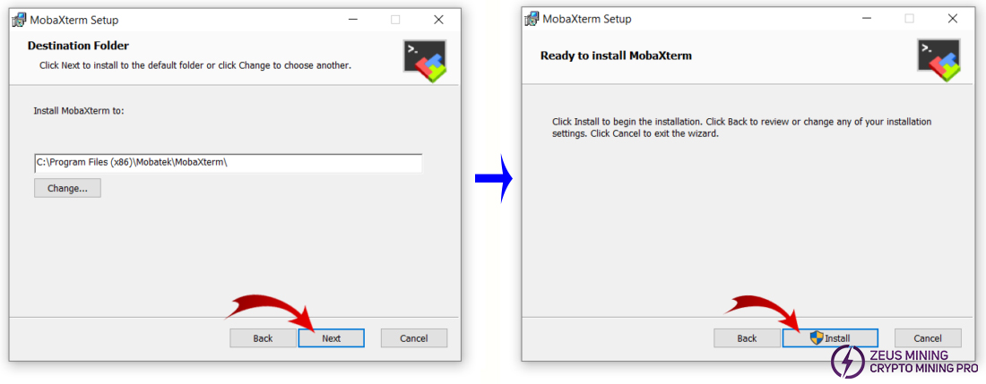 3. Select the folder where MobaXterm will be installed. Review the selected settings and, when ready, click the "Install" button.