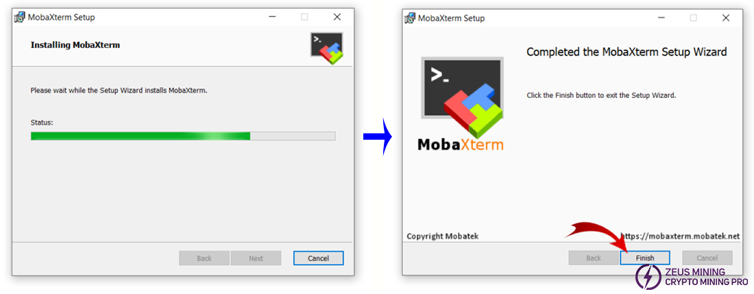 4. The MobaXterm program installation process takes some time. Wait patiently for it to complete, select run now, keep the "Launch MobaXterm" option and click the "Finish" button.