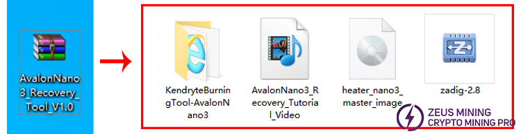 1. Get the Avalon Nano3 recovery tool compressed package and extract the files. The download method can be found at the end of the article.